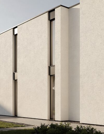 • Teplé neutrálne farby ako khaki, pieskové tóny či zemité odtiene vytvárajú nadčasový dizajn fasád.