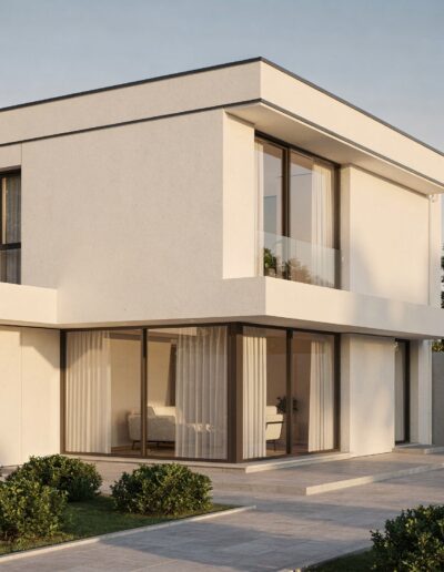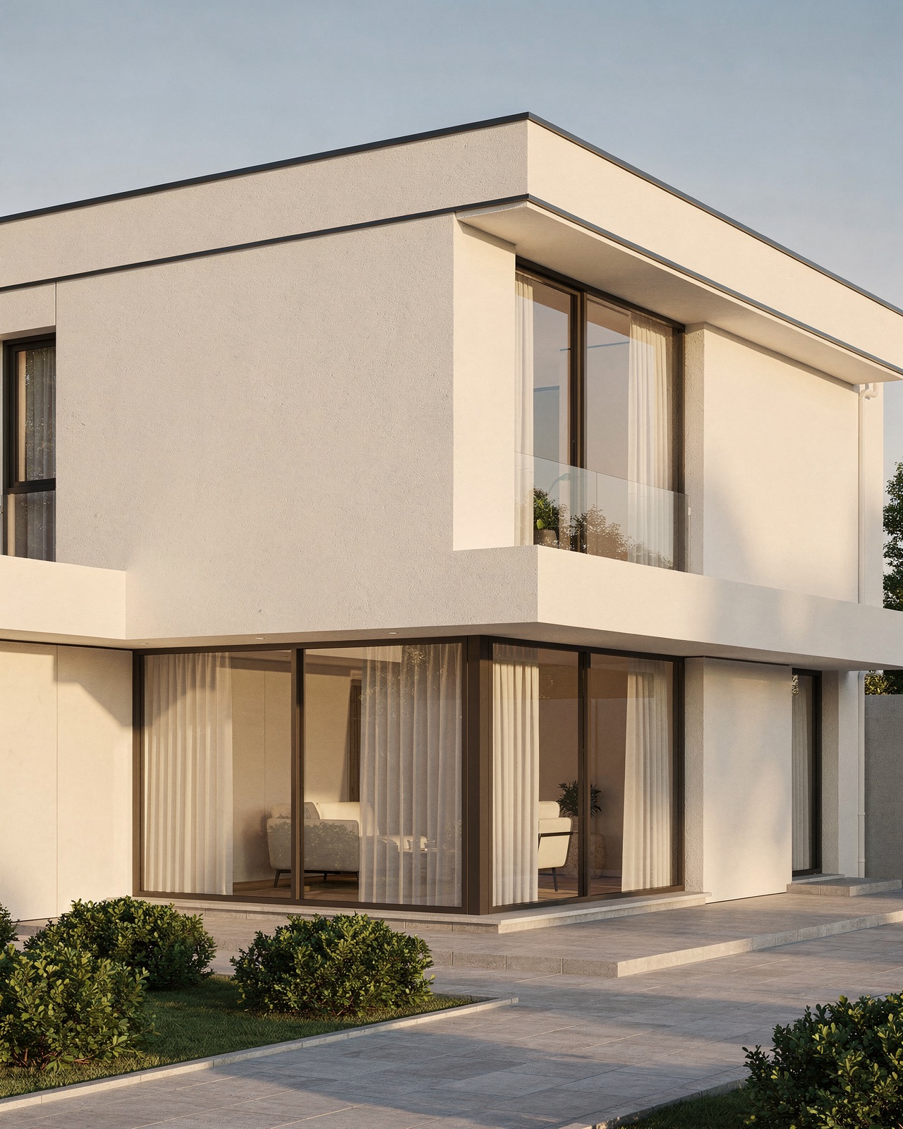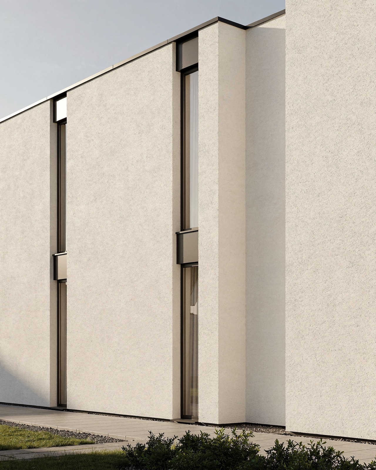 - Teplé neutrálne farby ako khaki, pieskové tóny či zemité odtiene vytvárajú nadčasový dizajn fasád.
